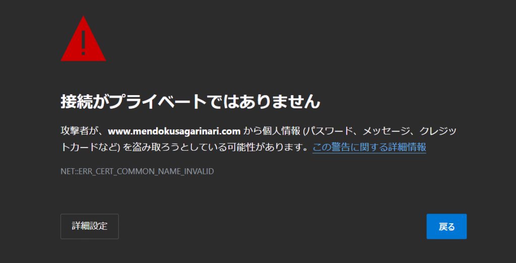 ブログを開設して最初にアクセスしたとき、ブラウザに「接続がプライベートではありません」と表示されてしまった。エラーの原因と解決方法。